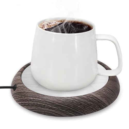 Coffee Mug Warmer, USB Cup Warmer Tea Warmer with Non-Slip Base, Beverage Mug Warmer for Milk Coffee Tea, Cup Mug Warmer Heated Coaster for Home Office Coffee Cup Warmer (Dark Wood Grain, 100mm)