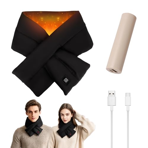 Aroma Season Heated Scarf, Neck Heat Pad for Pain Relief, 3 Temperature Settings, Rechargeable 5000mAh Power Bank, Camping, Cycling, Hiking, Winter Heated Neck Wrap for Women and Men, Gifts(Black)