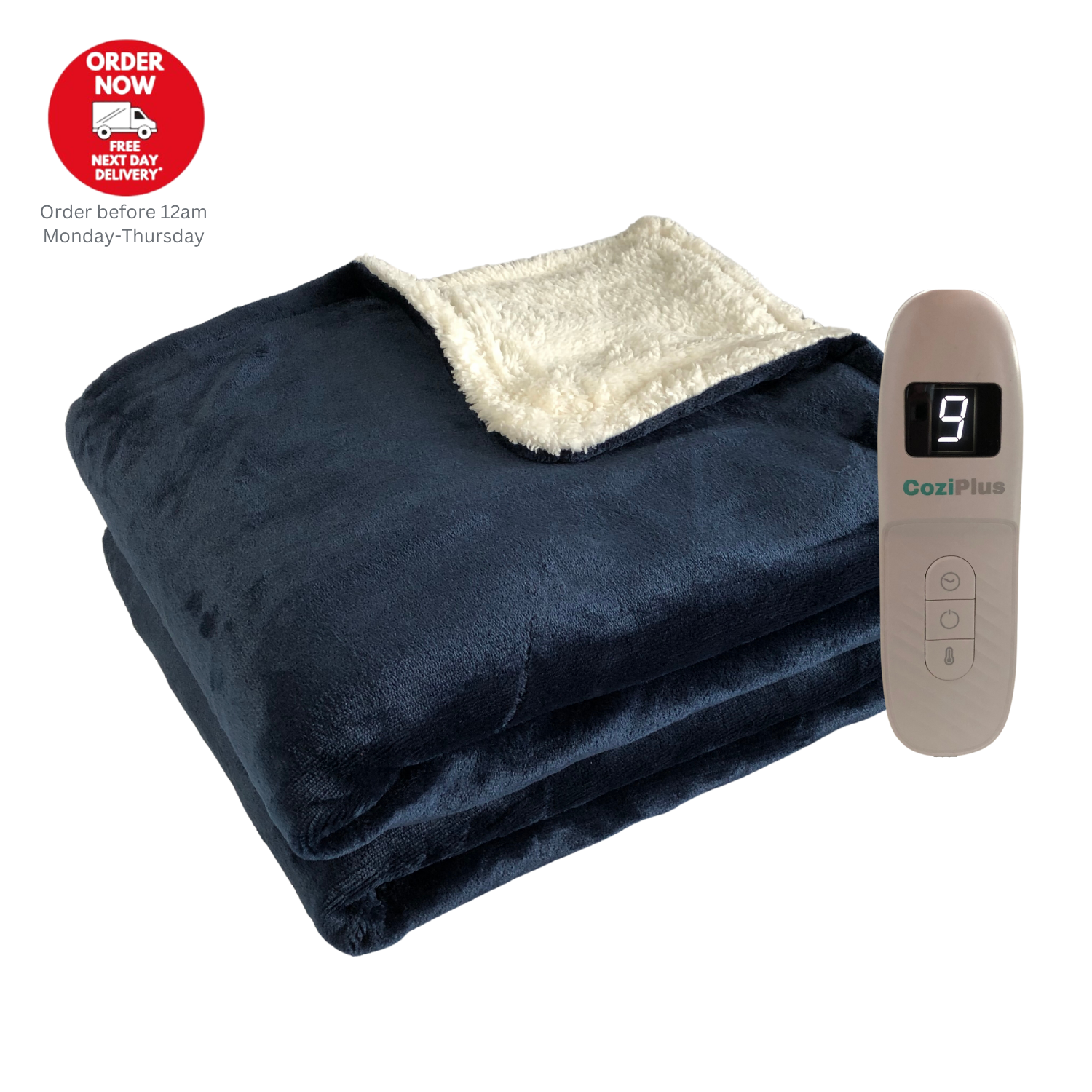 CoziPlus Electric Heated Throw Over Blanket Navy, 9 Heat & Timer Controller ,XL