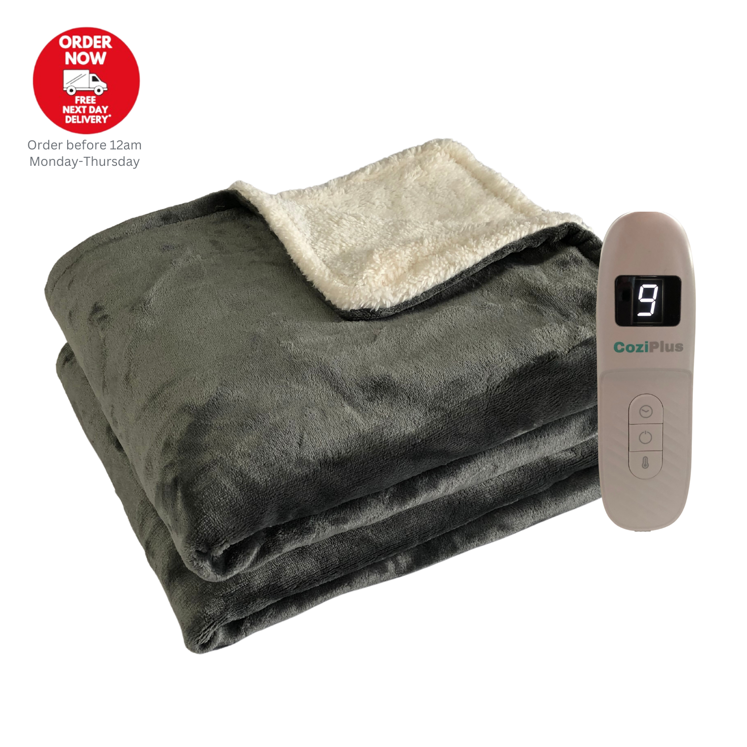 CoziPlus Heated Throw Electric Over Blanket Grey, 9 Heat & Timer Controller ,XL