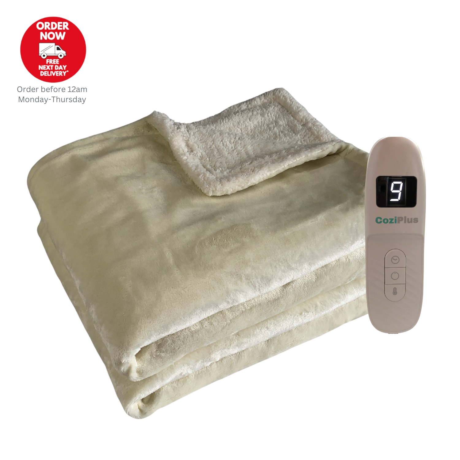 CoziPlus Electric Heated Throw Over Blanket Cream, 9 Heat & Timer Controller,XL
