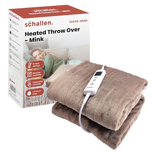 Schallen 120x160cm Soft Heated Warm Throw Over Blanket with Timer and 10 Heat Settings (Mink Beige)