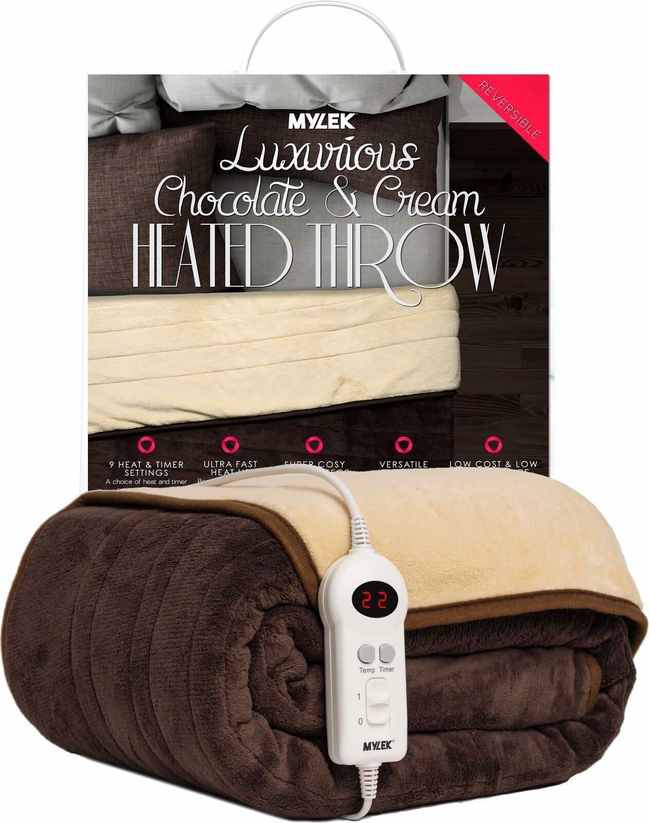 Homefront Electric Heated Throw Over Blanket Reversible Brown and Cream, XL Family Size 130 x 200cm, Easy To Use, Digital Control, Machine Washable, Ultra Soft Premium Luxury Finish