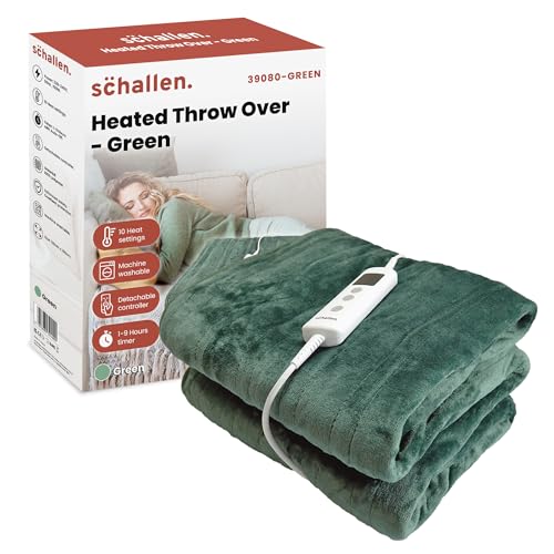 Schallen 120x160cm Soft Heated Warm Throw Over Blanket with Timer and 10 Heat Settings (Forest Green)