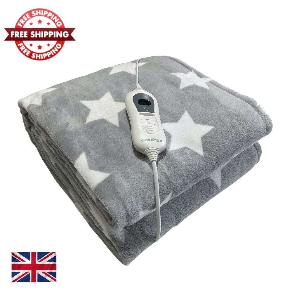 Christmas Electric Heated Throw Over Blanket 180x130cm, Grey Stars, Fast Heat Up