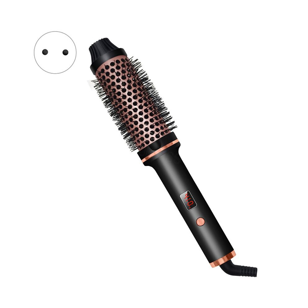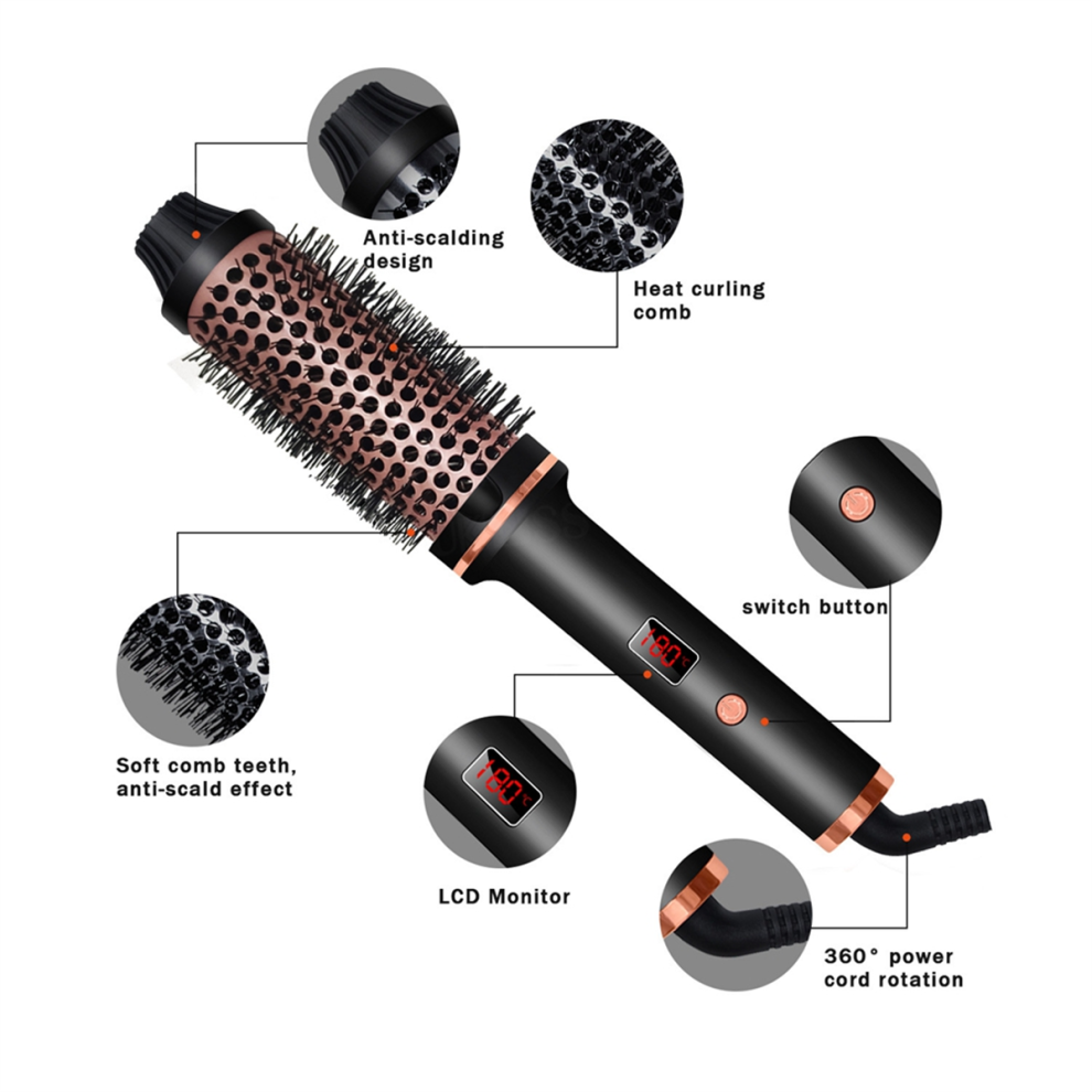 (Black, us) 3 In 1 Ionic Hair Curler Straightener Professional Curling Iron Heated Hair Styling Brush Anti-Scald Thermal Brush Curl Wand