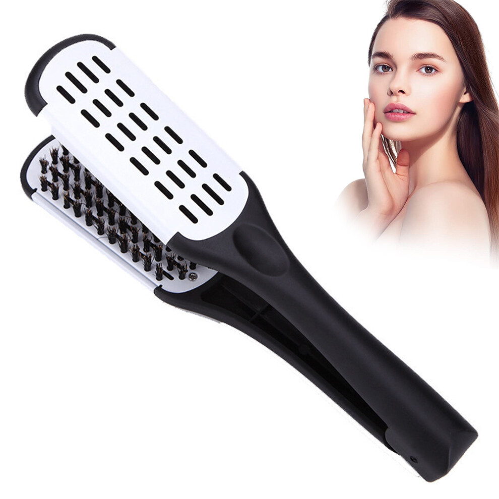 Hair Straightening Comb Brush Boar Bristle Heated Iron Brush For Hair Styling-White