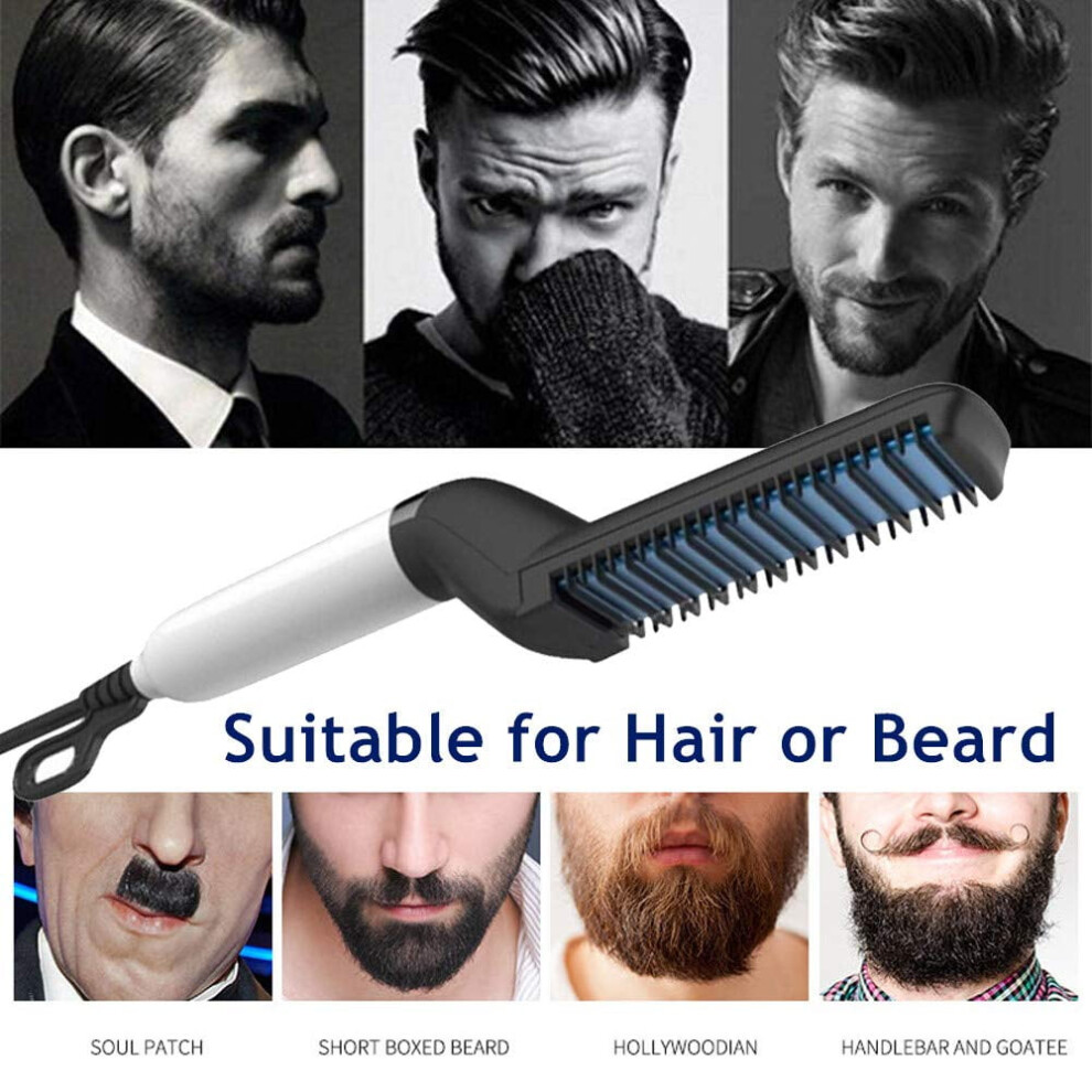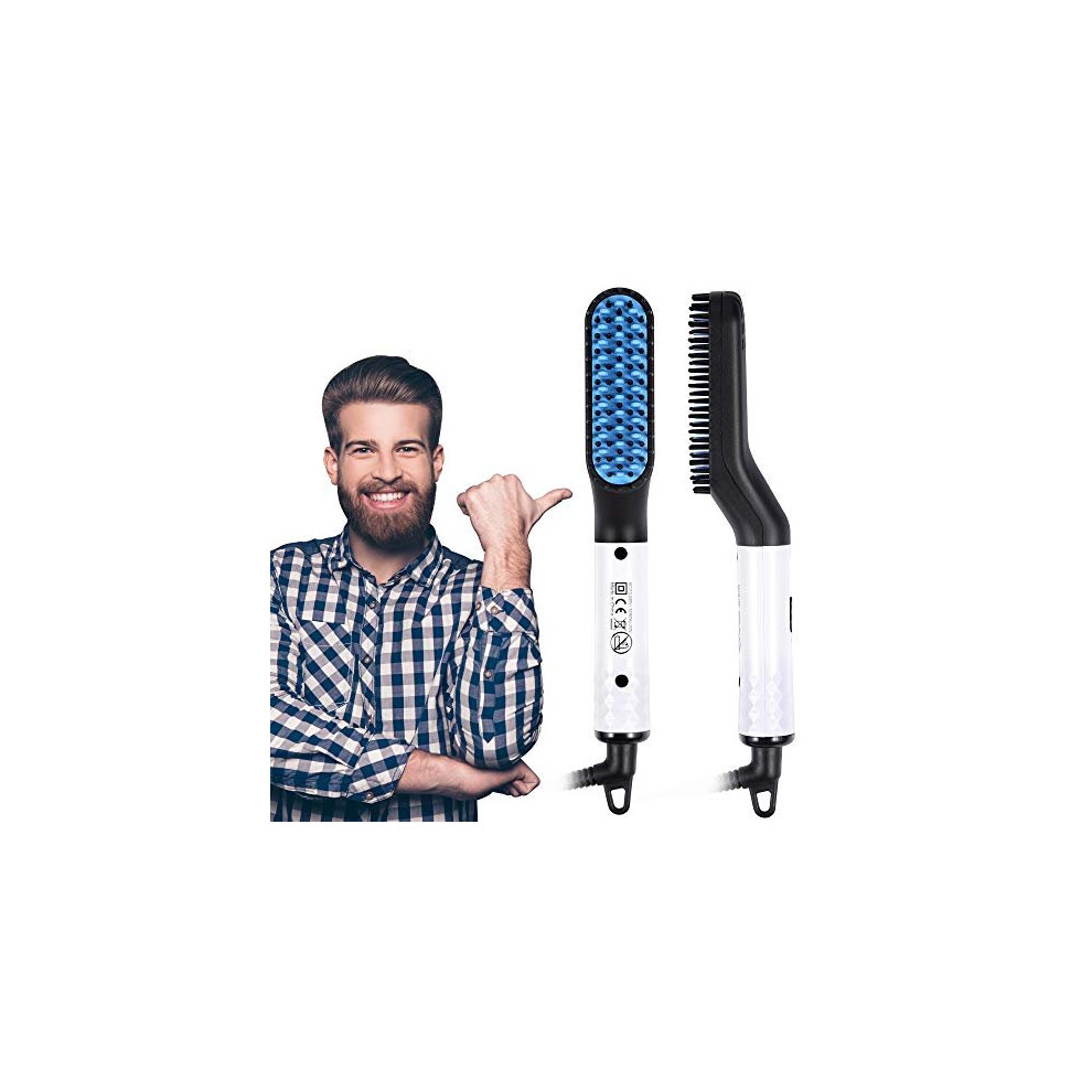 Mens Beard Straightener Brush- Electric Ionic Faster Quick Heated Comb for Men Long Beard- Hot Iron Universal Voltage Portable Travel Hair Styling