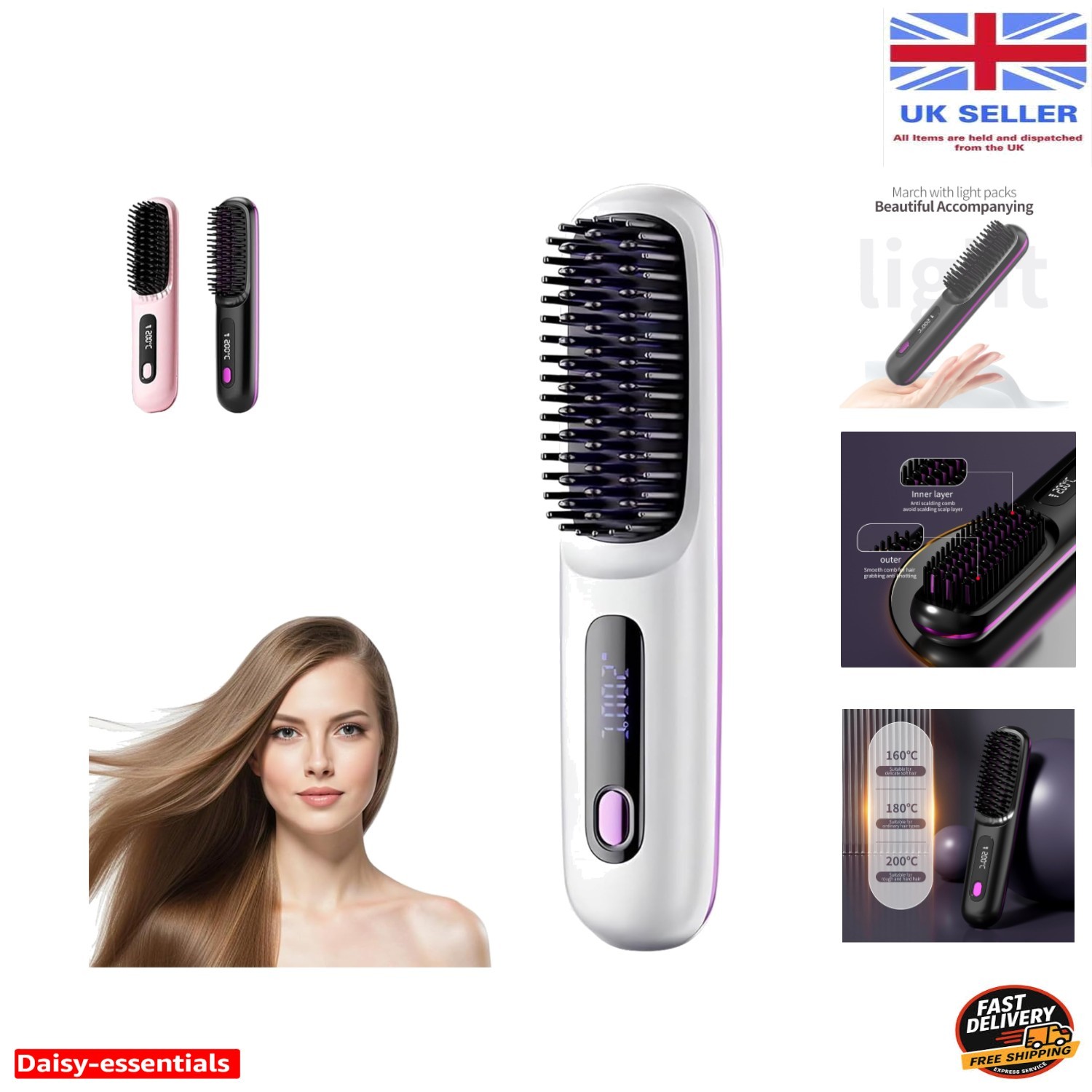Cordless Hair Straightener Brush With Ionic Care Fast Heating And Anti Scald Design For Safe Styling Heated Brush Straightener Even Heat Distribution