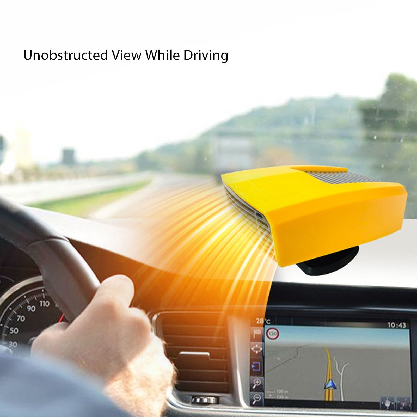 Car Heater 12V, Plug-and-Play O-peration, Blakc/Yellow, Portable Window Heating Fan, Windshield Defroster, Rapid Heating, For SUV RV Tractor Trailer Automotive Cold Weather