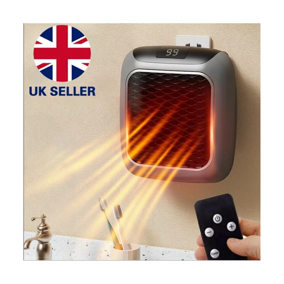 Portable Electric Heater 800W UK Plug Timer With Remote Control Digital Display