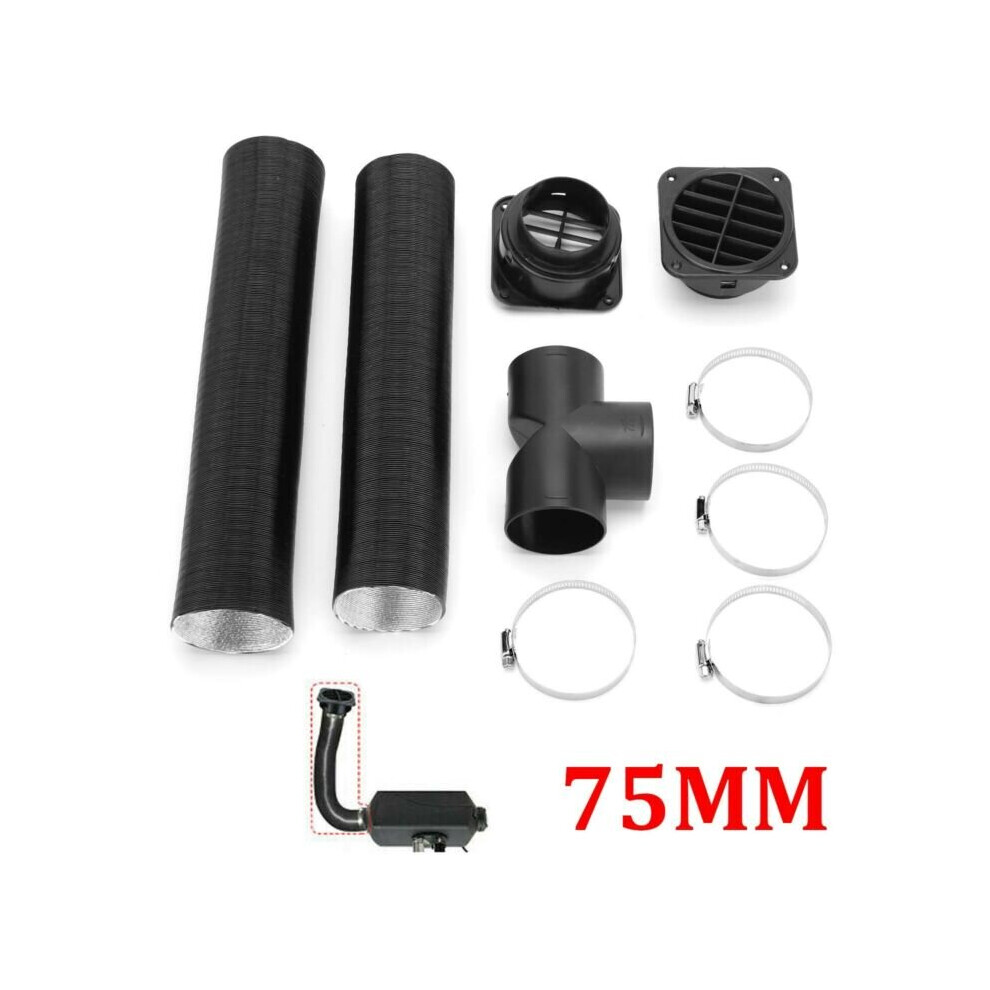 "75mm Pipe Ducting T Piece + Warm Air Outlet Vent + Hose Clip For Diesel Heater UK "