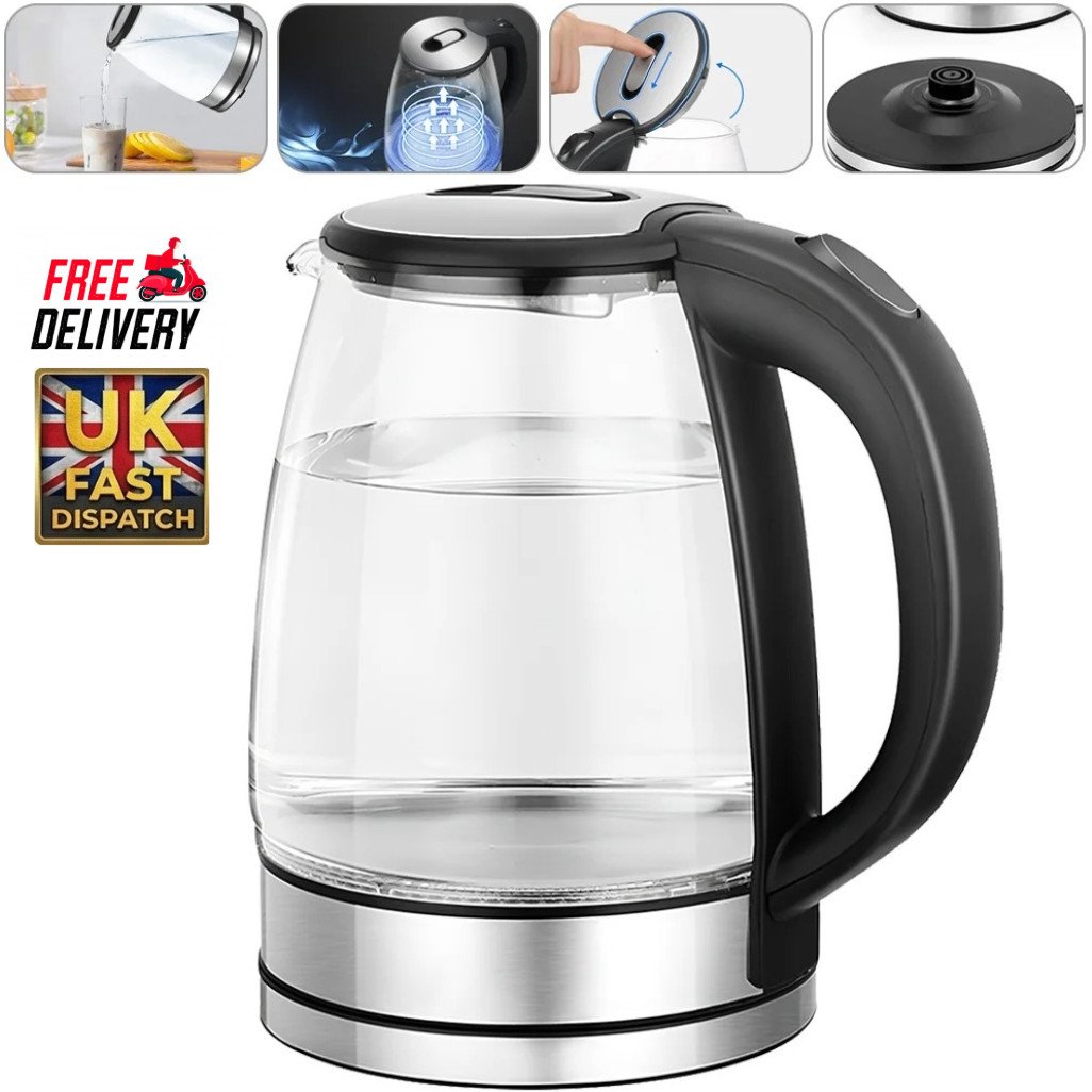 2L Electric Glass Kettle Blue LED Illuminating Water Heater Tea Coffee UK Plug