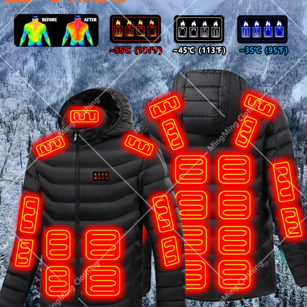 (Black, 36) Wanrenshan Popular Men's Functional Heating Jacket, Four Controls, Three-Speed Settings, 21-Zone Intelligent Temperature Control