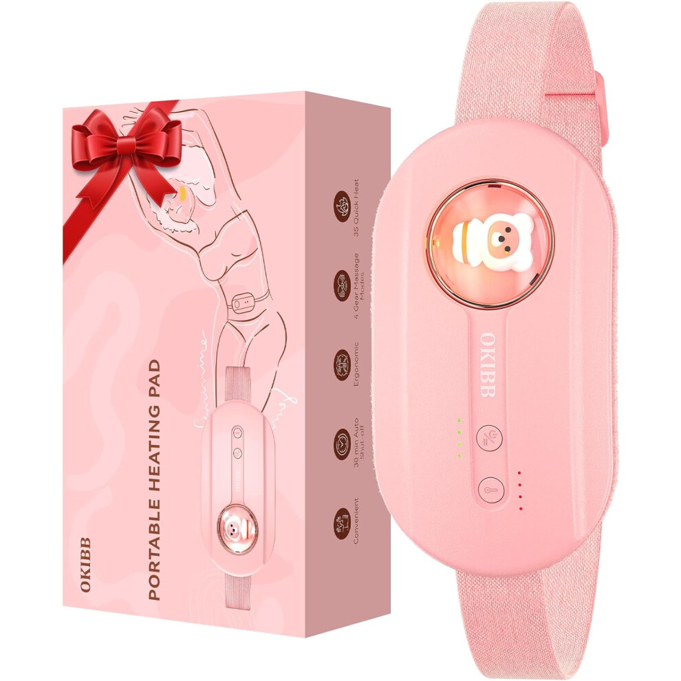 Otbushit Cordless Heating Pad for Cramps 3 Heating & 3 Vibration Modes Period Cramp Simulator Portable Back Belly Pad with Adjustable Waist Belt for Girls