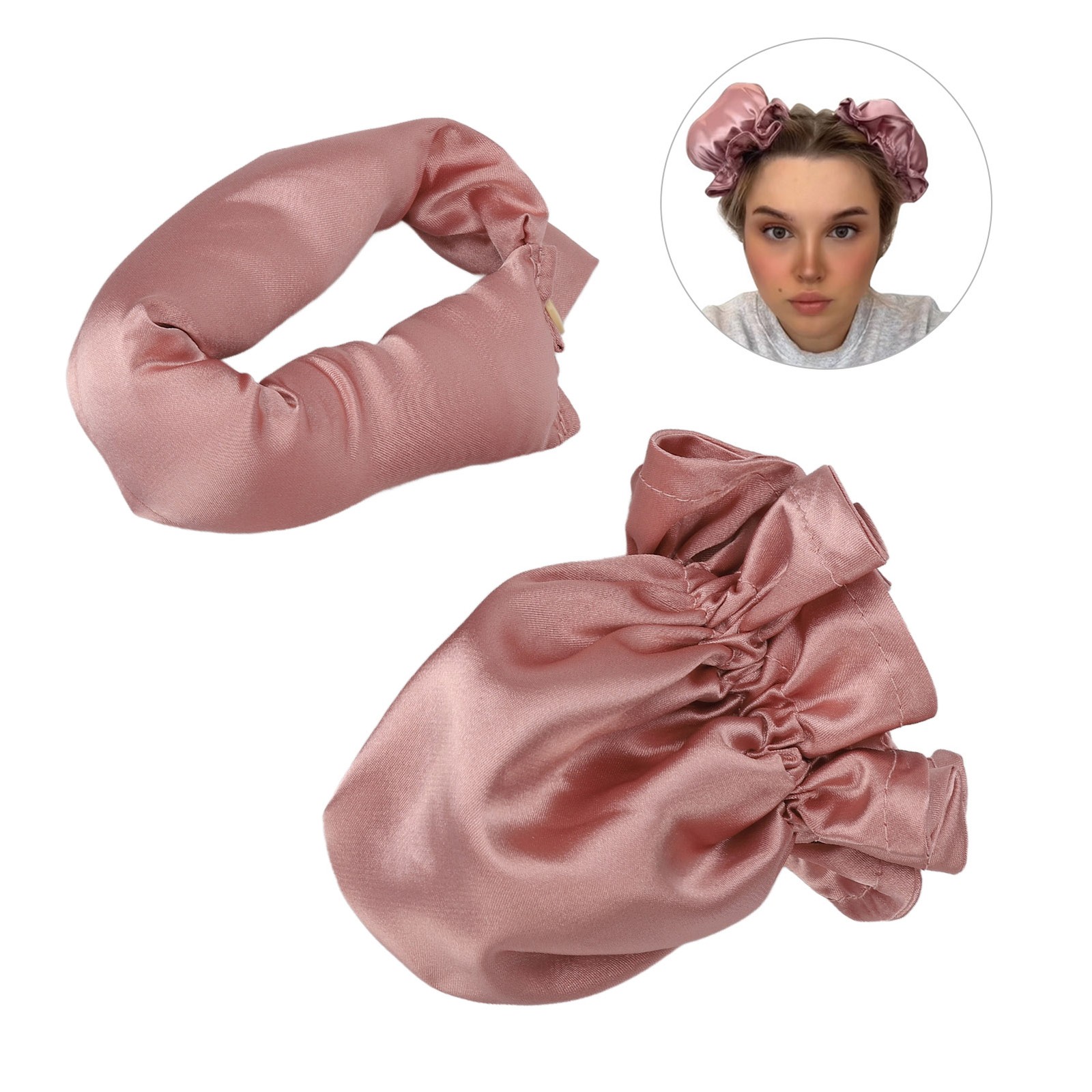 Women HEATLESS Hair Curler Headband Satin Sleep in Curls Dusty Pink