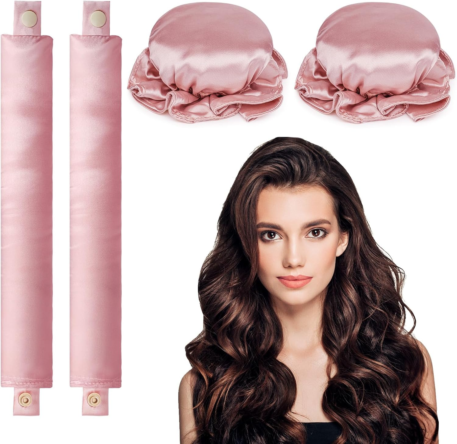 Heatless Hair Curler, 4Pcs Satin Heatless Curls Set, No Heat Hair Curling Rod wi