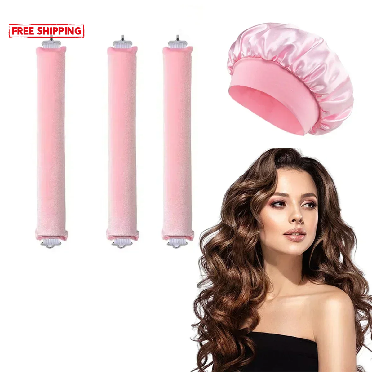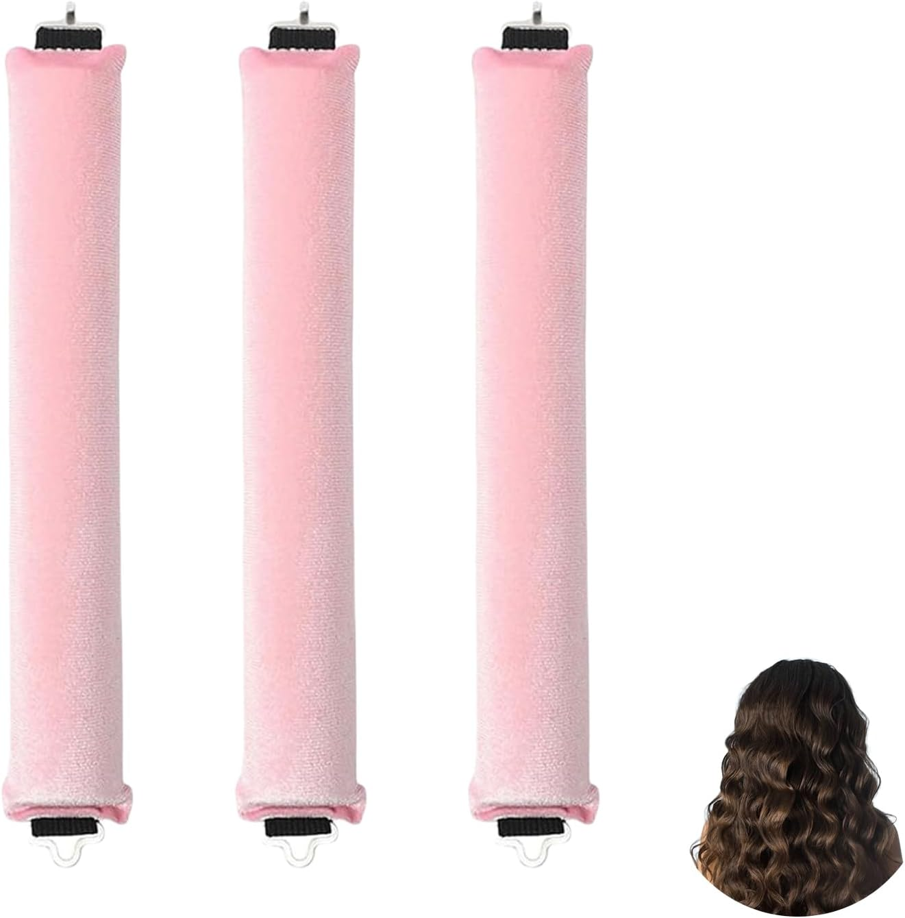 3Pcs Heatless Hair Curler, Soft Velvet Overnight Heatless Curls Blowout Rods wit