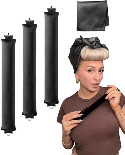 YOSHUYUKI Heatless Hair Curler to Sleep in No Heat Satin Heatless Curls Overnight Rods Curling Set Jumbo Large Foam Sponge Hair Rollers Curlers for Long Short Hair Volume Women Styling Tools (Black)