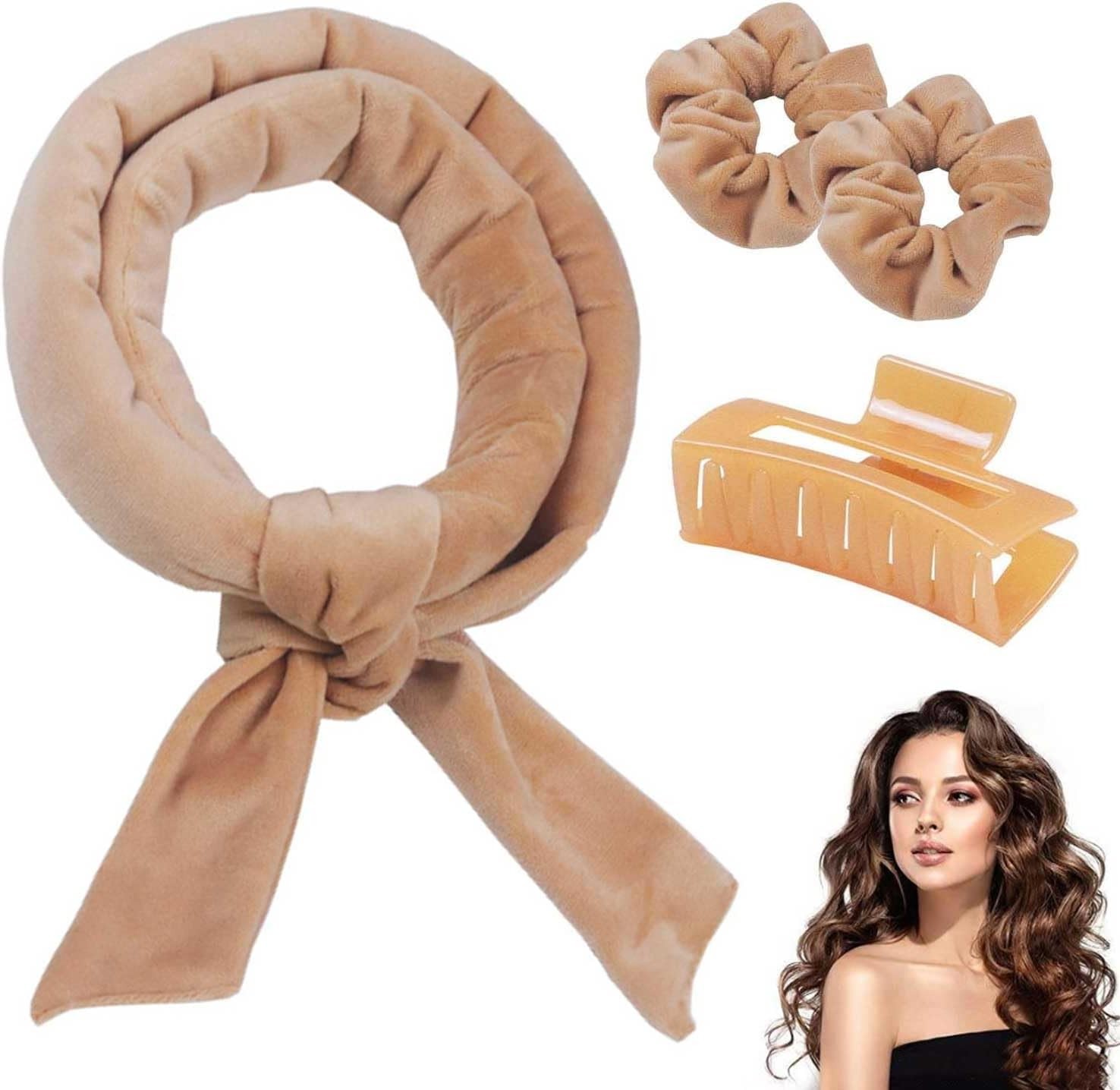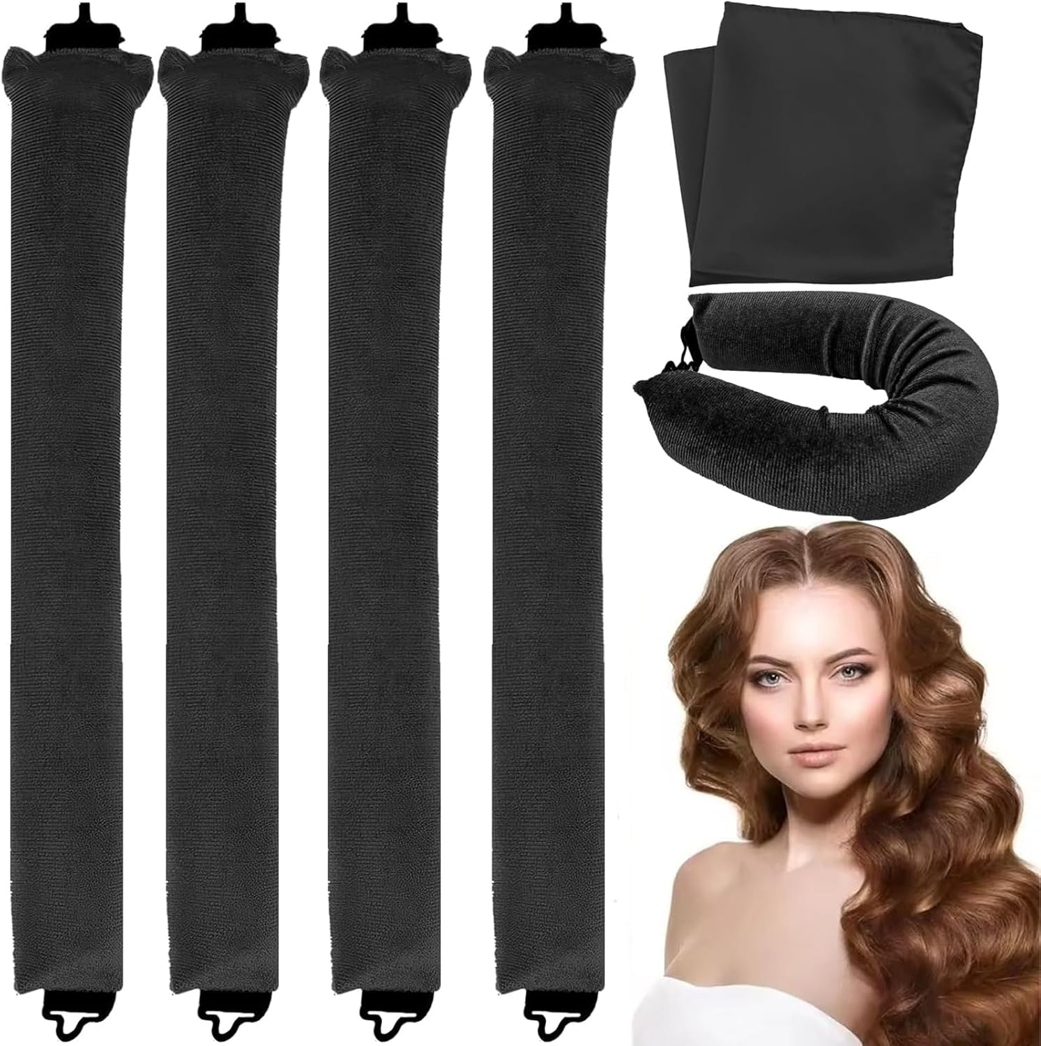 4PC Heatless Curls Set- Hair Rollers with Adjustable Square Scarf for Overnight