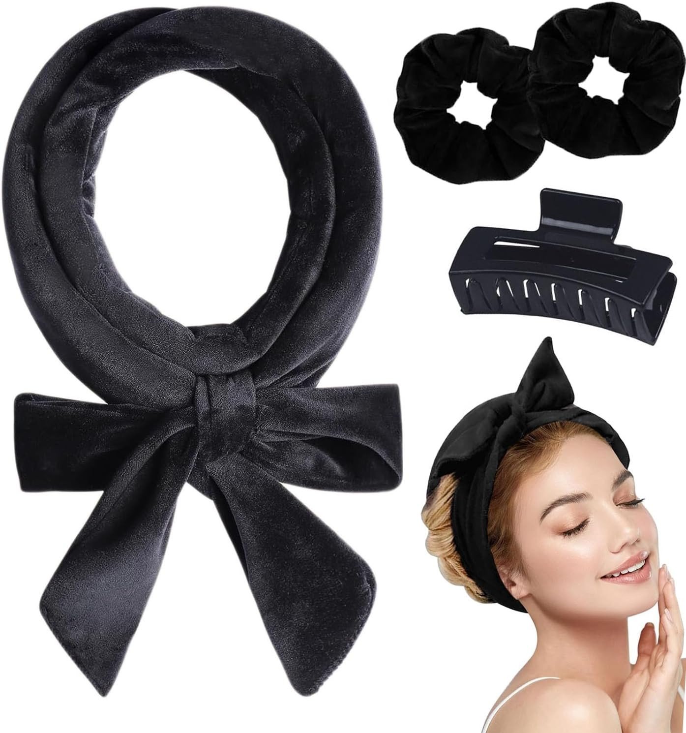 Heatless Curling Hair Rollers | Headband Set, Silk Ribbon with Soft Foam - Black