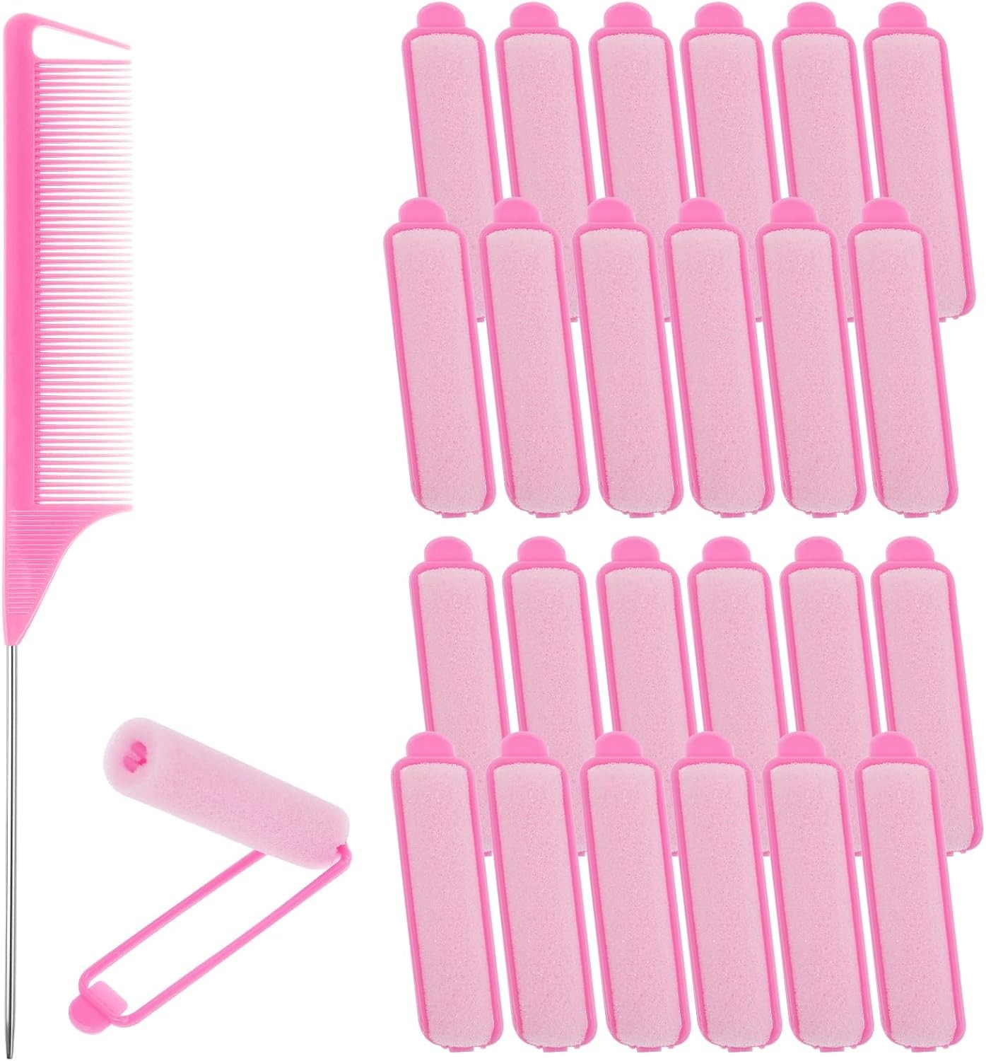 28PCS Sponge Foam Heatless Hair Curlers, Rollers for Long to Short Hair, Pink