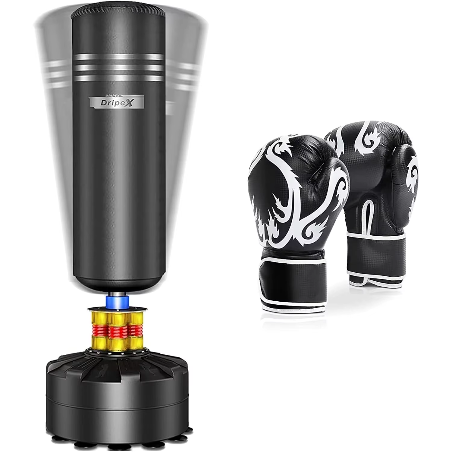 Dripex Freestanding Punch Bag - Heavy Punch Boxing Bag with Stand for Adults Teens, Men Standing Kickboxing Bag with Suction Cup Base & Foam Protector for Home Gym Office MMA Boxing Training