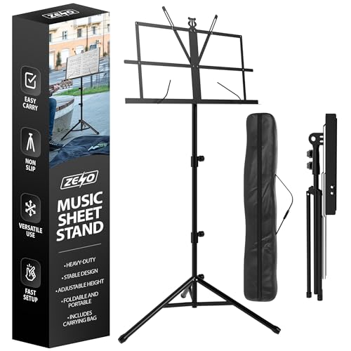 ZENO Music Stand | Music Stands for Sheet Music, Books, Notes | Music Sheet Stand with Music Sheet Clip Holder, Foldable Design & FREE Carry Bag | Heavy Duty Stand | Easy To Carry | Unfolds In Seconds