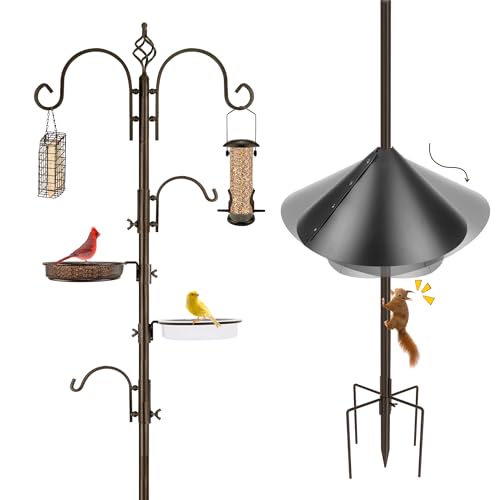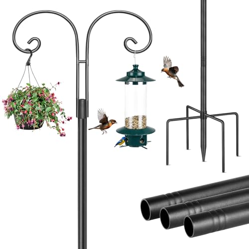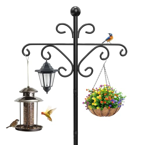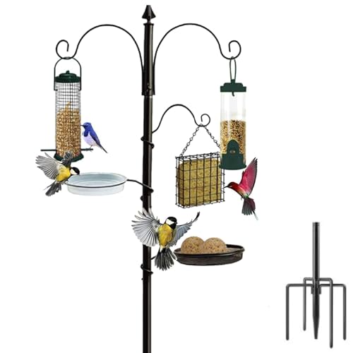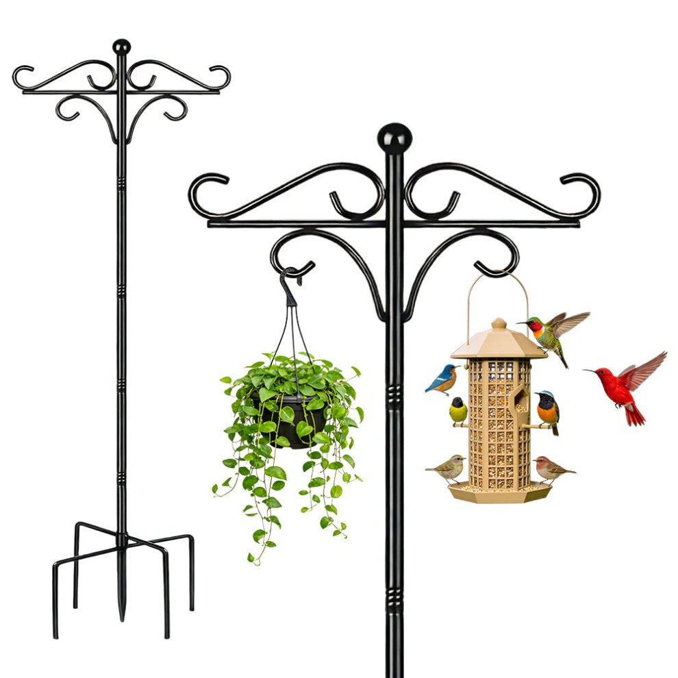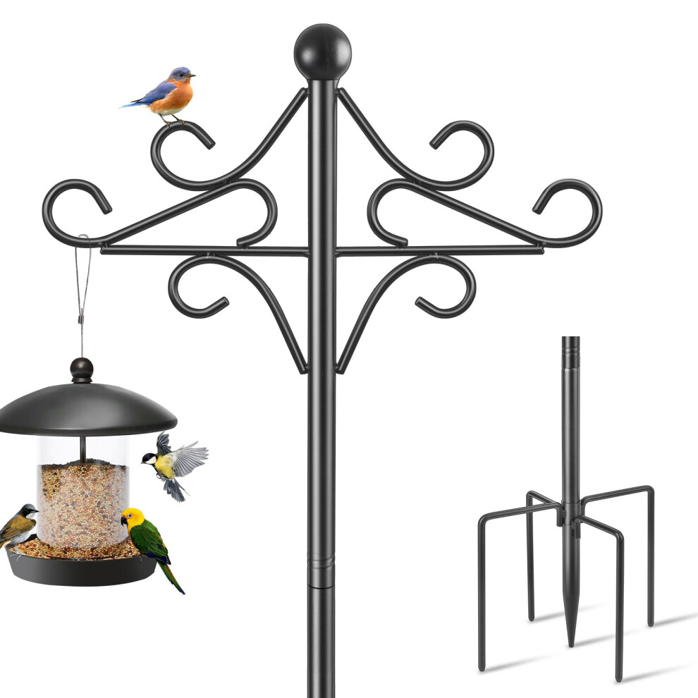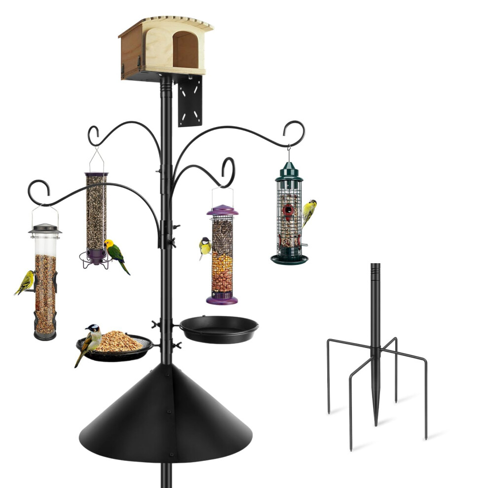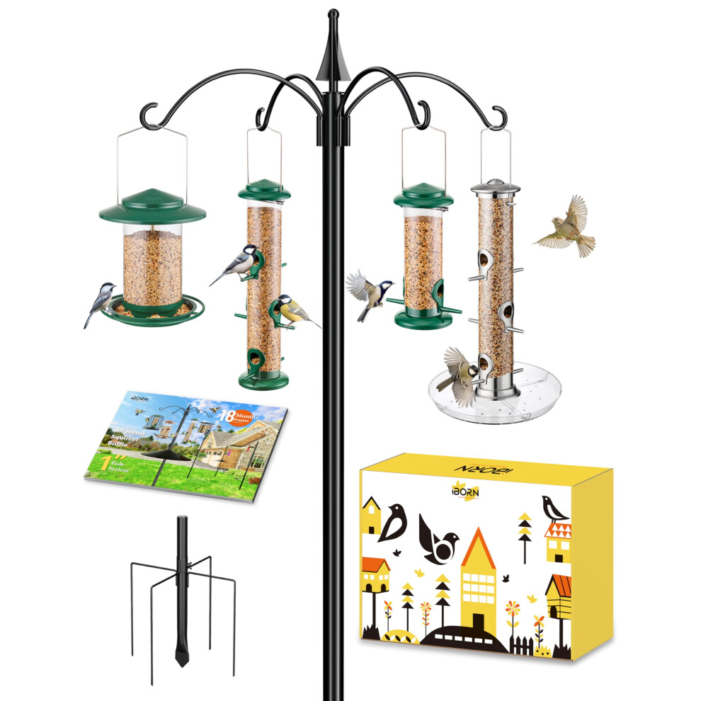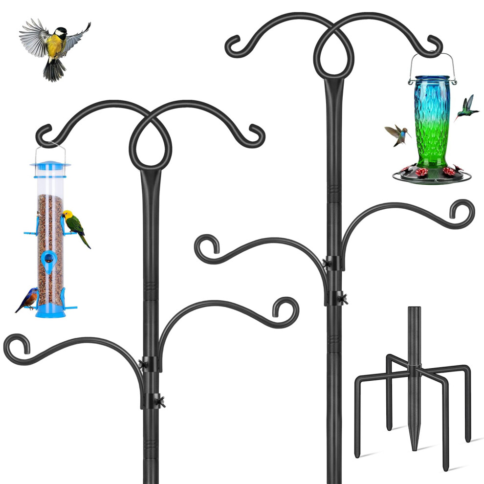 iBorn Bird Feeders Hanging Station 87Inch Wild Bird Feeding Station Stand Heavy Duty For Feeders Hanging, 1 Inch Thickness Pole, 4-Hooks,5-Prong Pole Stabilizer(Bird Feeders NOT Included)
