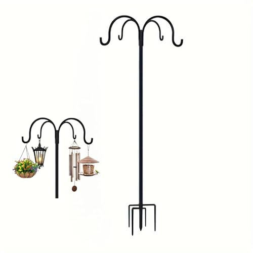 PATNFR Bird Feeder Hanging Station Stand Heavy Duty Metal Double Shepherd Crook Hook 196cm Bird Feeder Pole Feeding Station Hanging for Solar Lights Garden Freestanding Hanger for Yard Patio Outdoor