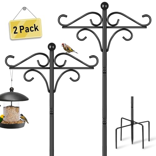 2 Pack Bird Feeders Hanging Station, 195cm Free Standing Wild Bird Feeder Poles and Hangers Heavy Duty Metal Bird Feeding Stand Shepherd Crook Hook for Outdoor Garden Light Lantern