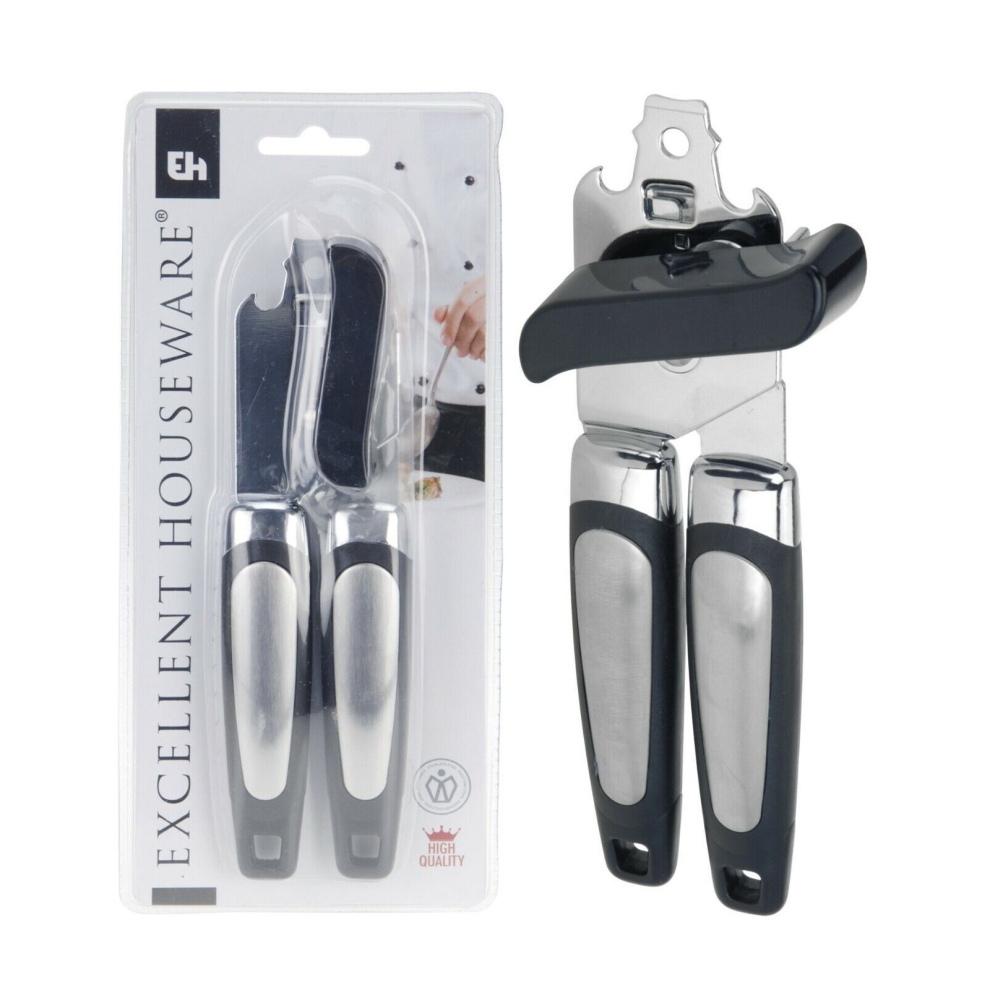 Heavy Duty Can Opener 3in1 Cutter Stainless Steel Easy Comfy Handle Grip Kitchen