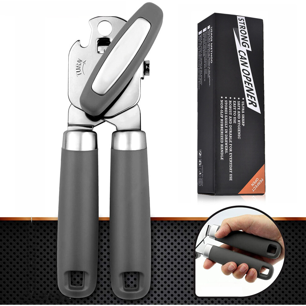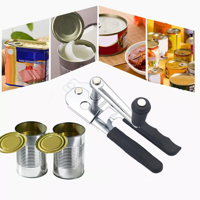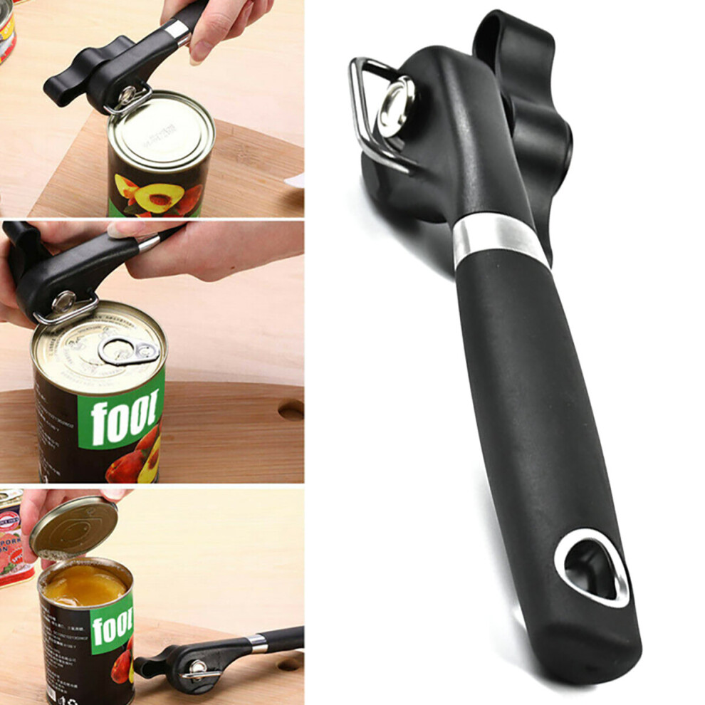 Heavy Duty Tin Can Opener Stainless Steel Cutter Easy Comfy Handle Grip Kitchen.