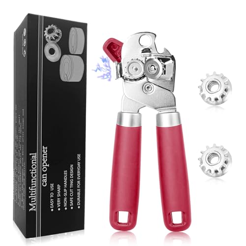 WHSY127 Can Opener Manual, Heavy Duty Stainless Steel Can Opener with Magnet, Smooth Edge with Sharp Blade Tin Opener Kitchen Gadgets Two Replacement Blades