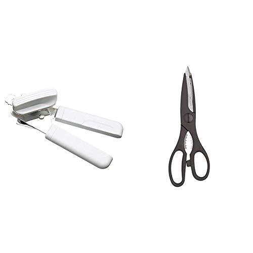 KitchenCraft Heavy Duty Can Opener/Bottle Cap Remover, 18 cm (7") & Multi-Purpose Stainless Steel Kitchen Scissors/Bottle Opener, 21 cm (8.5")