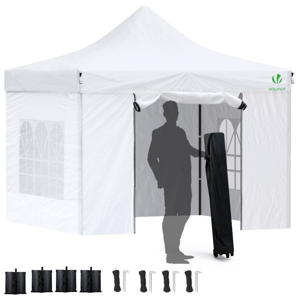 VOUNOT 3x3m Heavy Duty Gazebo with 4 Sides, Pop up Gazebo Fully Waterproof Party Tent with Roller Bag and Leg Weights, White