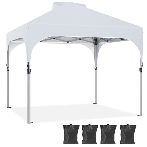 YITAHOME 3x3Meter Instant Heavy Duty Pop Up Gazebo, Folding Garden Camping Party Tent Canopy Marquee with Storage Bag, Stakes and Ropes for Patio Markets Beach (White)