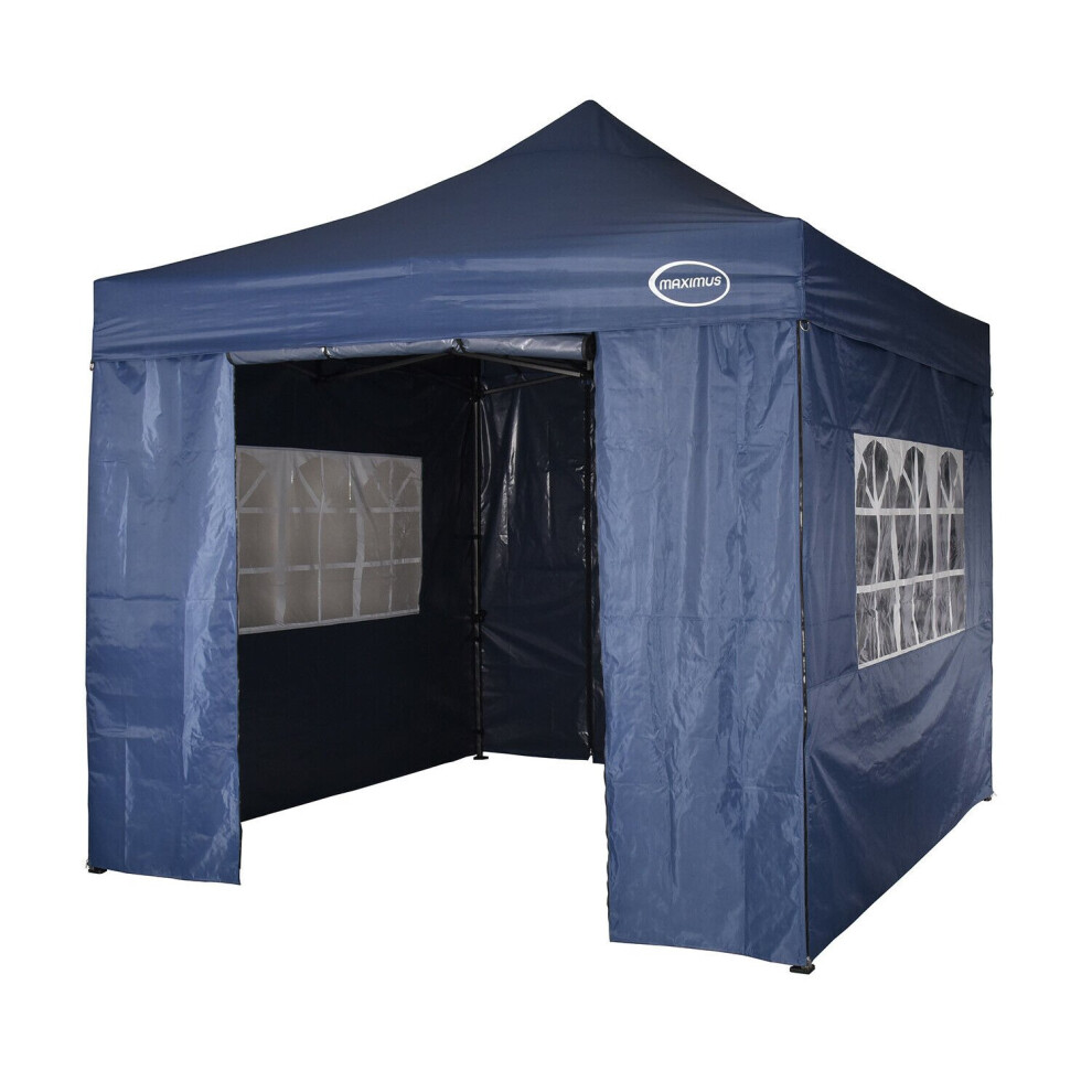MAXIMUS HEAVY DUTY POP UP GAZEBO 3m x 3m COMMERCIAL MARKET STALL WITH 4 WEIGHT BAGS (4 Walls, Blue)