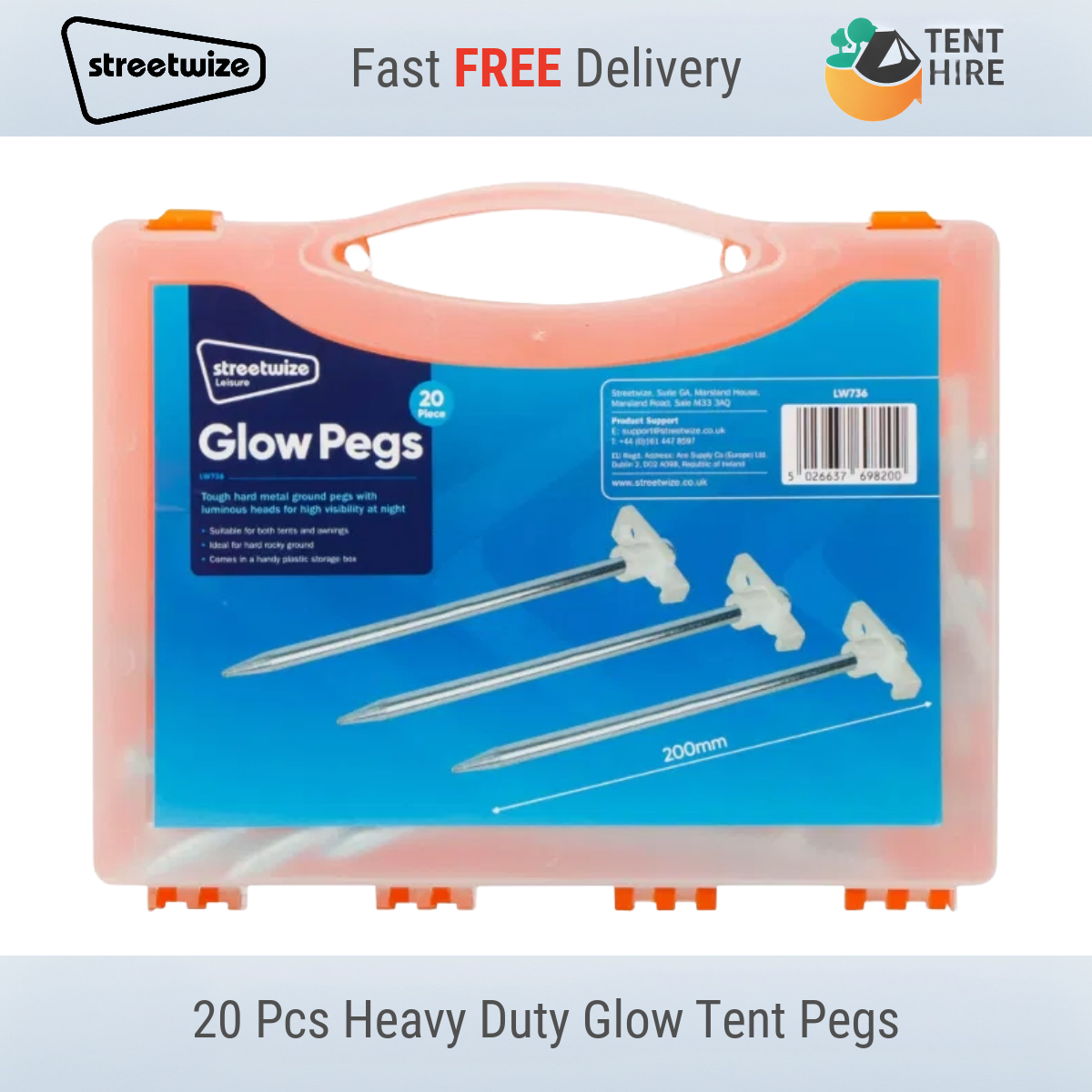 Tent Peg Set Glow Heavy Duty Awning Gazebo Pegs 20pc Camping Caravan Motorhome