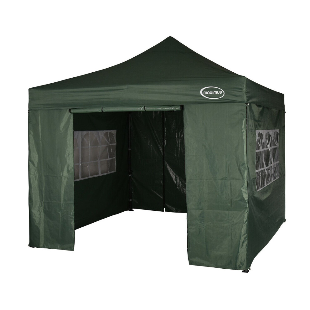 MAXIMUS® Heavy Duty Gazebo 3m x 3m commercial Gazebo Market Stall Pop Up Tent With 4 Sides (Green)
