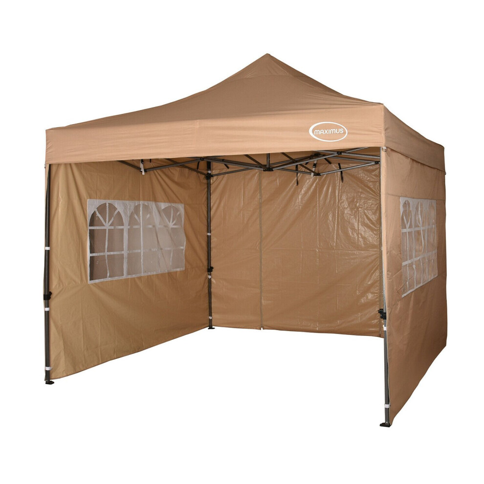 (Beige) MAXIMUS® Heavy Duty Gazebo 3m x 3m Gazebo Market Stall Pop Up Tent Without Side panels