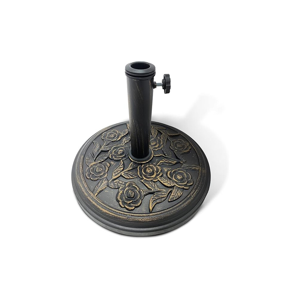 Straame 12KG Cast Iron Effect Garden Parasol Base - With Floral Rose Design - For Outdoor Furniture Umbrella, Canopy - Easy to Assemble, Heavy Duty Weather Resistant (Cast Iron Effect - 12 kg)