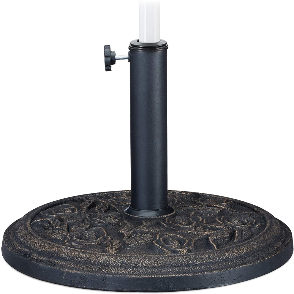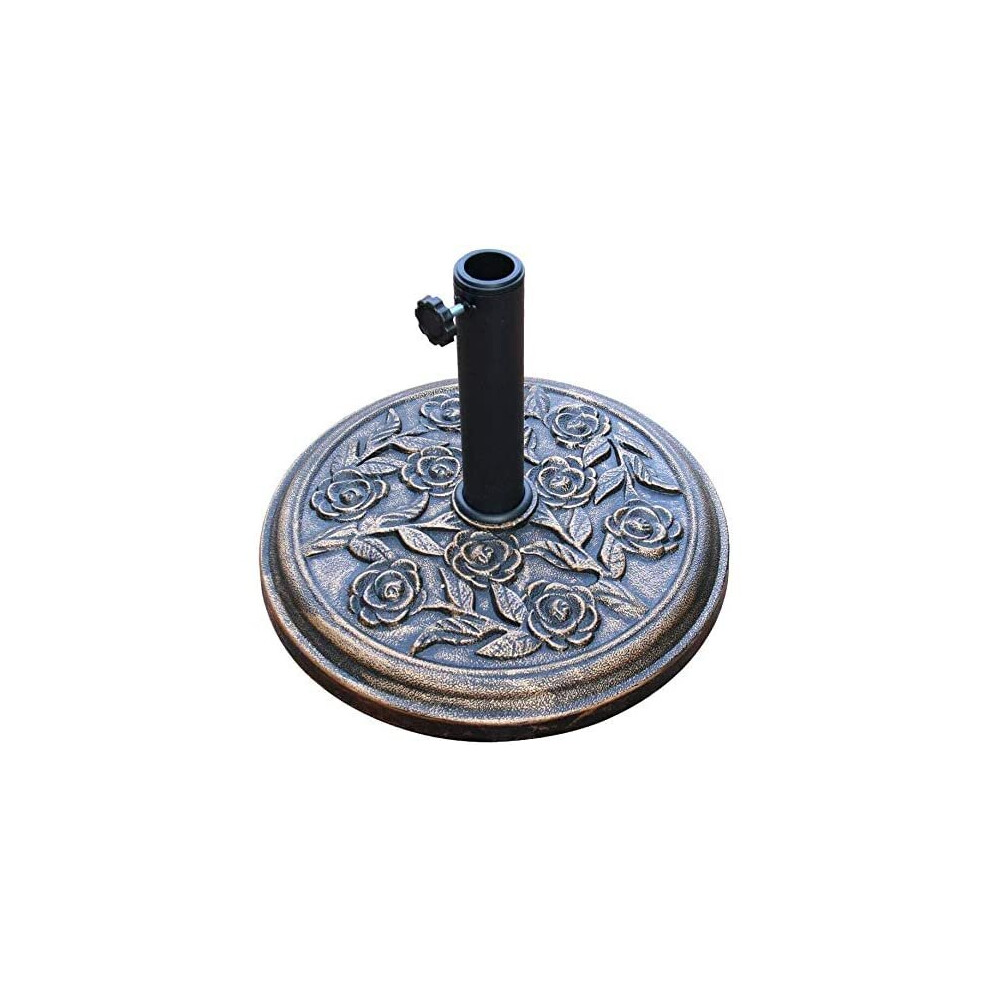 KEPLIN 12kg Cast Iron Effect Parasol Base with Floral Pattern – Heavy Duty Metal Garden Patio Furniture Stand for Umbrella, Canopy, Gazebo, Awning etc. – Diameter 45mm (12 Kg, Bronze)