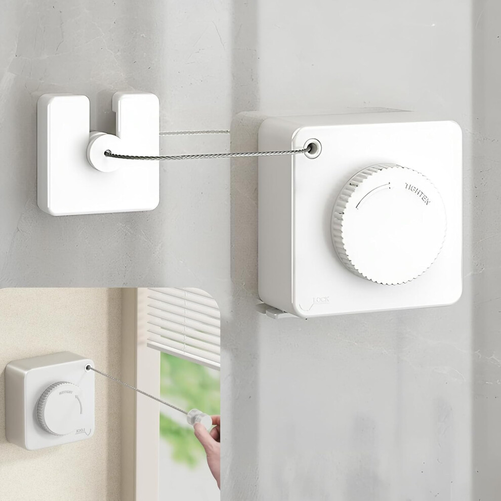 Feizikaw Storage Box Retractable Clothesline For Indoor And Outdoor Use Heavy Duty Stainless Steel Rustproof Washing Line Adjustable Length Wall Mounted Drying Rope Laundry Solution (White,9X9X4cm)