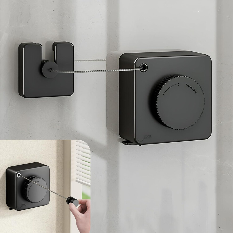 Feizikaw Storage Box Retractable Clothesline For Indoor And Outdoor Use Heavy Duty Stainless Steel Rustproof Washing Line Adjustable Length Wall Mounted Drying Rope Laundry Solution (Black,9X9X4cm)