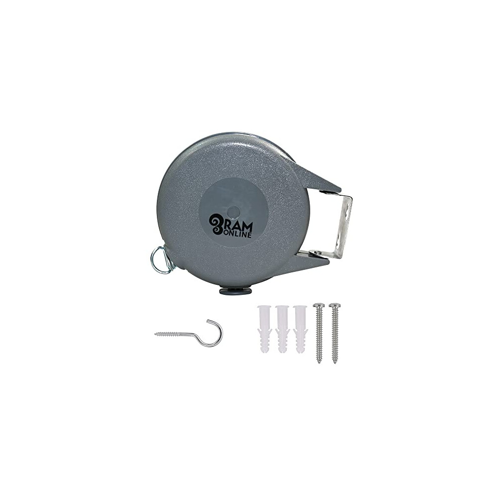 15m Retractable Washing Line Heavy Duty Indoor and Outdoor Laundry Dryer Weather Resistant Strong Automatic Rewind Reel Clothes Line - Grey