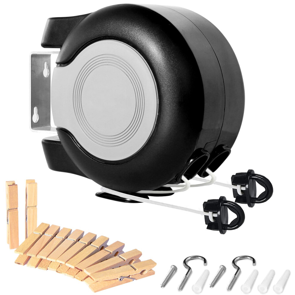 Retractable Clothes Line Wall Mounted, 30 Metres Twin Cable (2 x 15m), Heavy Duty Indoor Outdoor Washing Line, Space Saving Laundry Dryer, Black
