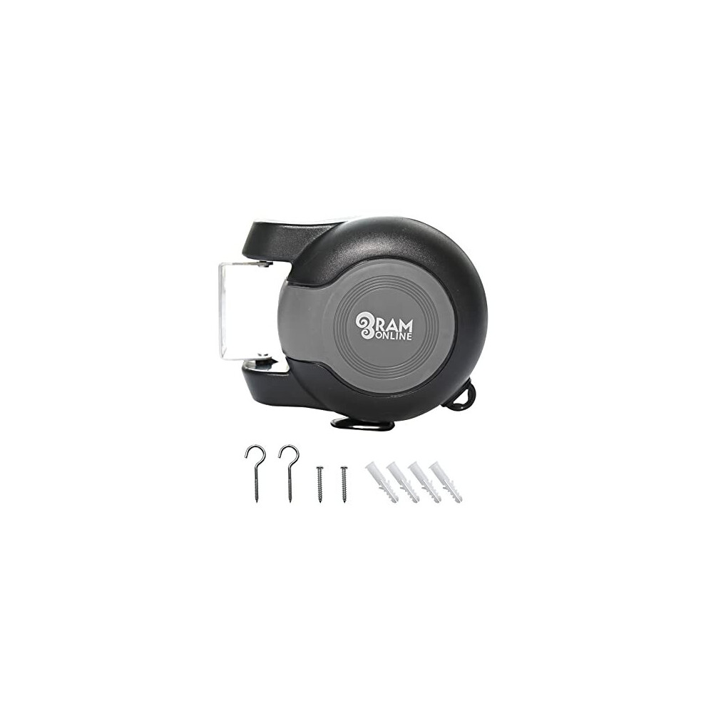 Ram? 30 metre Retractable Reel Clothes Lines Washing Line with Twin Cable - Wall Mounted Heavy Duty Clothes Dryer 2 x 15m Lines of Drying Space, Black