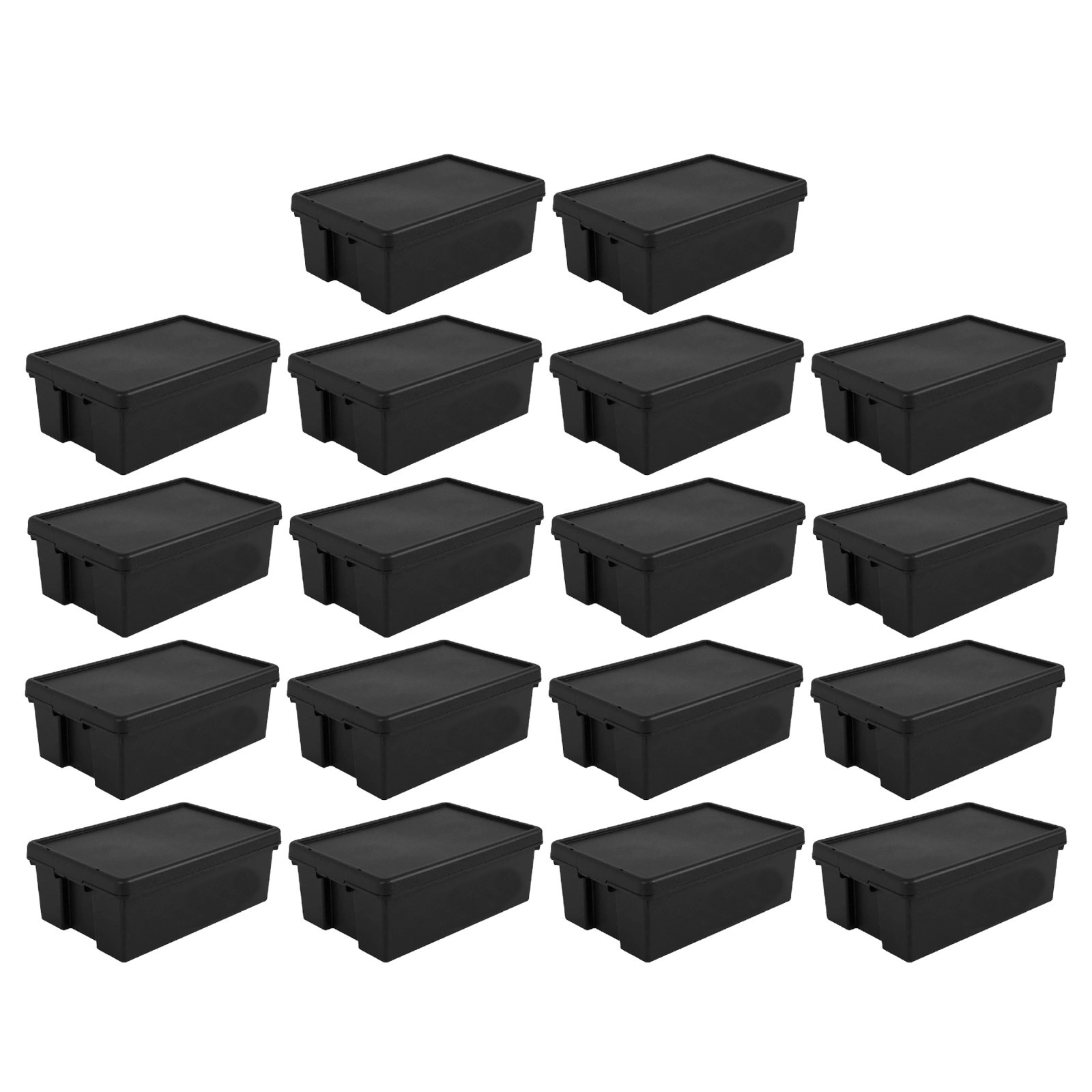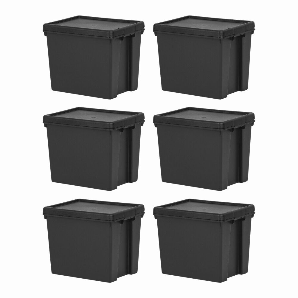 6 x Black Recycled Plastic Containers Heavy Duty Storage Boxes with Lids 24L UK