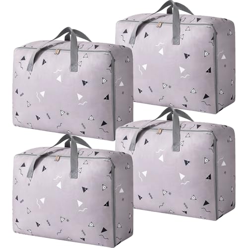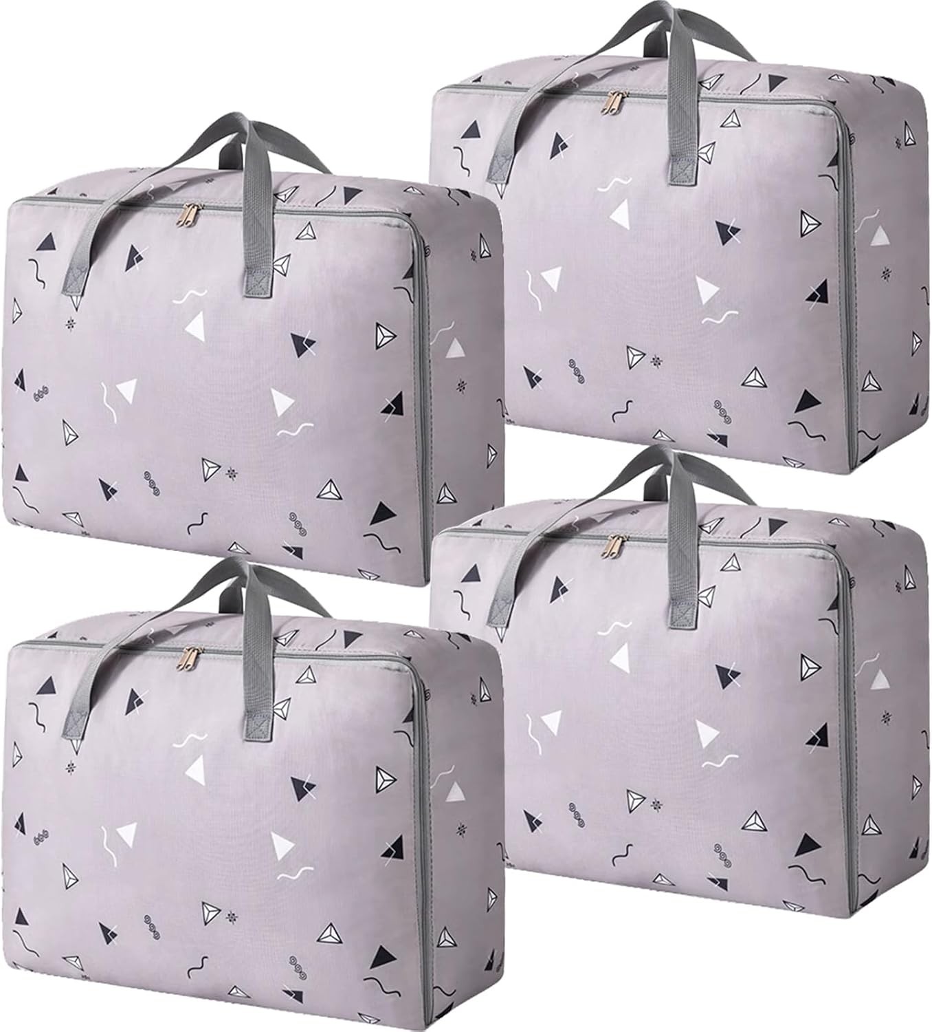 ASelected 4 Pack Large Heavy Duty Storage Boxes with Zips 105L Waterproof Oxford Cloth Moving Bags Laundry Bags for Underbed Clothes, Blankets, Pillows, Bedding (70x30x50 Cm)